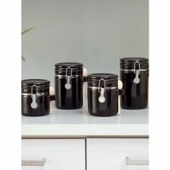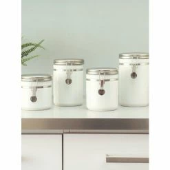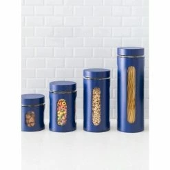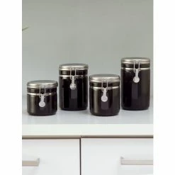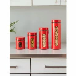 Home Basics 4 Piece Essence Collection Stainless Steel Canister Set, Red Storage & Organization