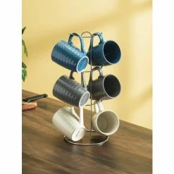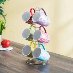 Home Basics 6 Piece Daisy Mug Set With Stand, Multi-Color Drinkware