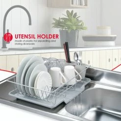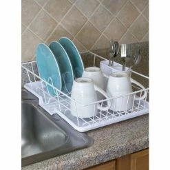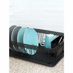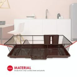 Home Basics 3 Piece Vinyl Dish Drainer With Self-Draining Drip Tray – Brown Tools & Accessories