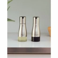 Home Basics 8.5 Oz. Oil And Vinegar Set With See-Through Glass Base, Silver Tools & Accessories