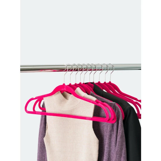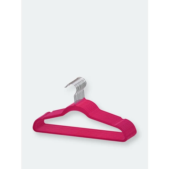 Whether you want to keep that little red dress you wore at the party last night looking as stunning as you are, or that buttoned down polo easily accessible for your 9-5, this lightweight hanger provides the perfect closet storage solution to meet your unique lifestyle. Its soft, non-slip velvet texture offers a luxurious feel while also preventing garments from falling to the ground. The contoured frame features two small evenly spaced space indents on each side of the hanger to ensure your clothing maintains its shape for years to come.
