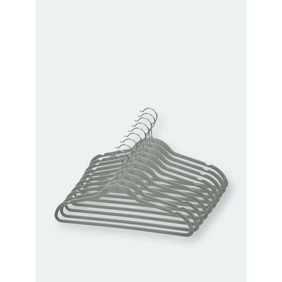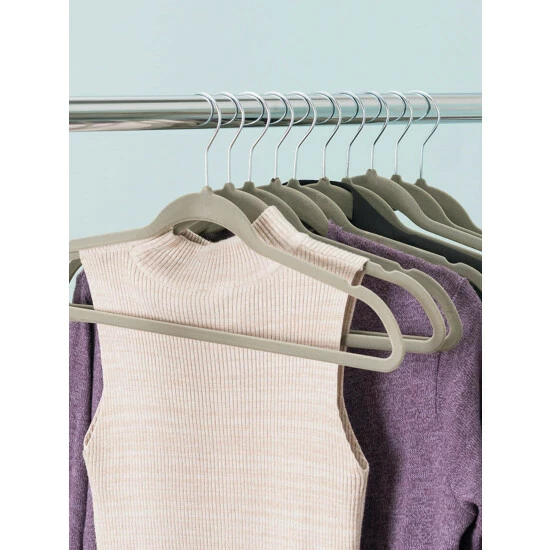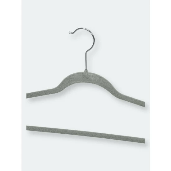 Keep your clothes off the floor with these velvet non-slip hangers. Made from soft non-slip velvet to keep clothing in place. Small indents to hold clothes with thin straps.