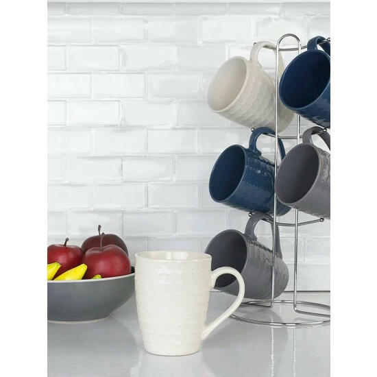 Enjoy your favorite morning drink in this mug set. Made from heavy duty stoneware for durability. Perfect for morning coffee, afternoon tea, and even late night sweet hot chocolate. Top-rack dishwasher safe for an easy clean up. Perfect in any kitchen setting.
