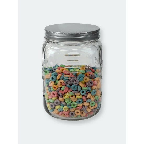 The versatile glass mason jar features thick glass walls with measurement indicators on the side. Beyond canning jams, storing honey, this mason jar is great for storing coffee beans, flour, sugar, or other dried ingredients you want close at hand. Store and showcase your favorite foods. Or load it up with candies and other sweet treats for the perfect home-made gift.