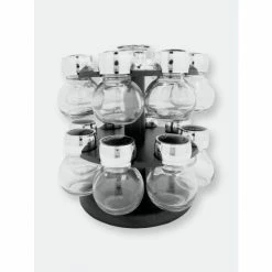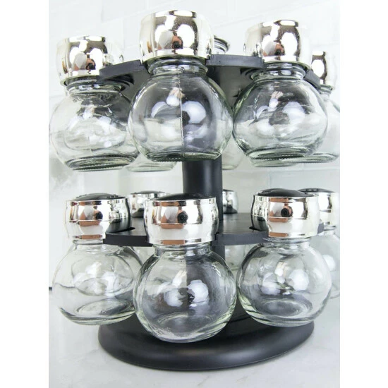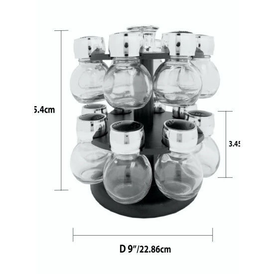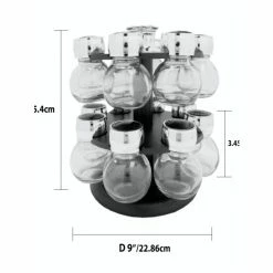 – Smooth Spinning Action: The racks rests on smooth ball bearings for a smooth and effortlessly turn with a weighted base that keeps it staying in place even when each of the unfilled, durable glass jars are loaded with spices.