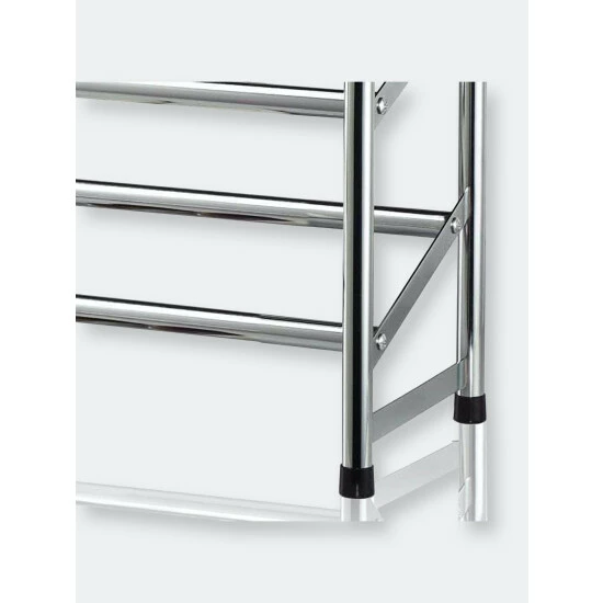 Store and organize all of your shoes and heels in one convenient place. Made from heavy duty chrome plated steel. Holds 8 pairs of shoes. 2 levels of storage. Expands up to 46 inches.