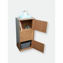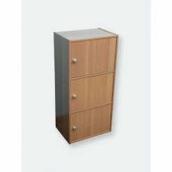 Gain extra storage space with this standing wood cabinet. This robust wood storage cabinet incorporates 3 closed compartments providing ample space for your crucial and precious items. Store everything from folded linen, kids toys and clothes, office supplies and more. Setting up the cabinet is a breeze thanks to the included hardware with this highly durable and stylish unit. The Firm hinge connection, along with its easy grab handles ensures the doors smoothly open and close. And with its simple and clean design this adaptable storage cabinet will match effortlessly in any area of the home, office, bedroom. This free standing storage cabinet features no rough edge with a smooth finish that wipes off clean in a cinch.