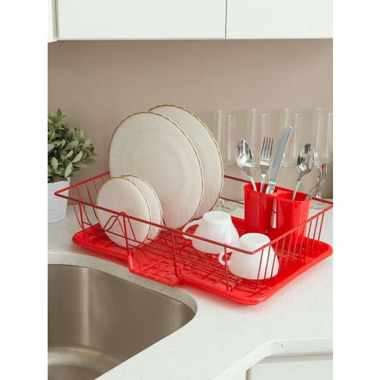 – Complete 3 Piece Dish Rack Set: 1 Dish Rack, 1 Multi-Compartment Plastic Cutlery Holder, and 1 Draining Board