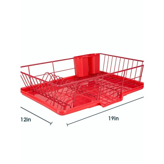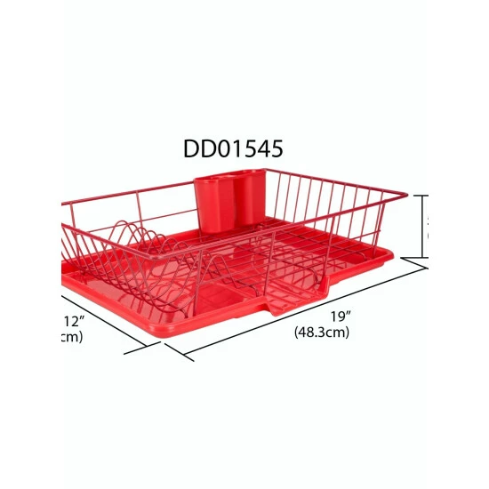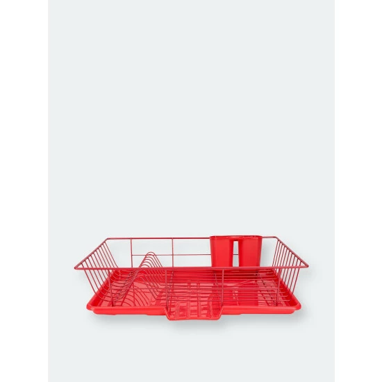 We understand drying stacks upon stacks of dirty dishes and wiping countertops down dry after washing is a big enough chore as it is. Which is why we made this convenient and stylish dish rack to help get this unnecessary burden off your plate with this 3 piece vinyl coated steel dish drainer. Eight evenly space slots let you neatly stack plates for drying or displaying, while the two compartment cutlery holder with perforated bottoms provide an organized way to air dry or showcase silverware. The dishrack also provides ample space to store mugs, cups, glasses, and bowls, as well as a sloping tray for excess water to transfer directly to the sink and away from your countertops.