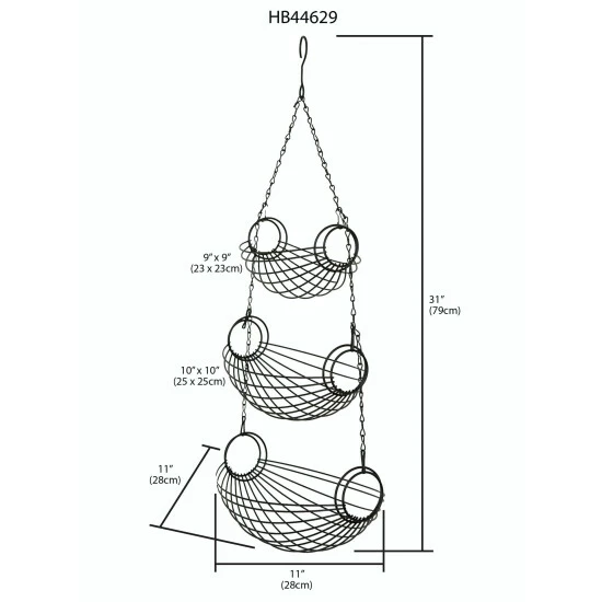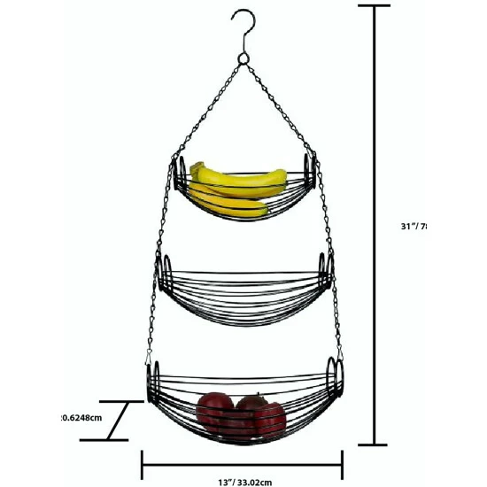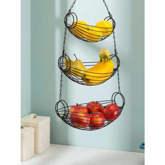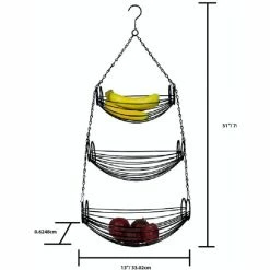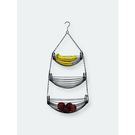Organize your fresh produce in this 3 level hanging fruit basket. The 3 tier design provides ample to store a wide range of fresh fruit. The bottom base is perfect heavy weighted fruit, while the top tier is perfect for storing clementines and smaller arrangements of fruit. Sturdy clip makes it easy to hang in your kitchen, freeing your countertop of clutter.