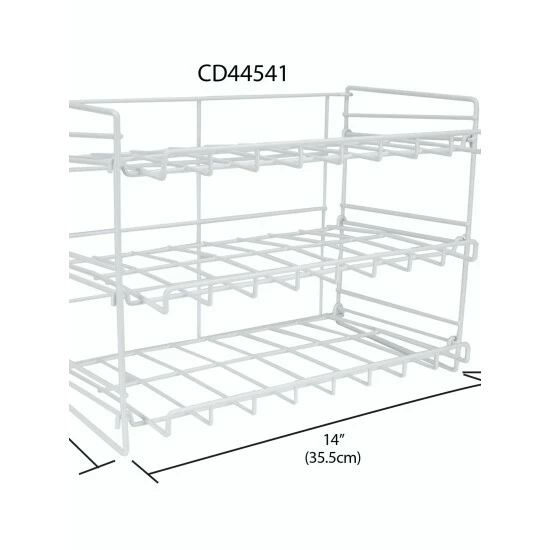 Bring order to your fridge and tidy up shelves with the help of this can dispenser. Made from high quality steel with a thick vinyl coating. With its open frame, easily get to your canned foods or beverages and keep track of what you have on hand. Canned items are displayed horizontally maximizing precious space. Wipe the surface with a clean cloth. Canned items are not included and are shown for illustrative purposes. Item dimensions may differ slightly due to the unique nature of the product. Color and finish may differ slightly from the images shown due to differences in monitor displays Props and accessories are not included.