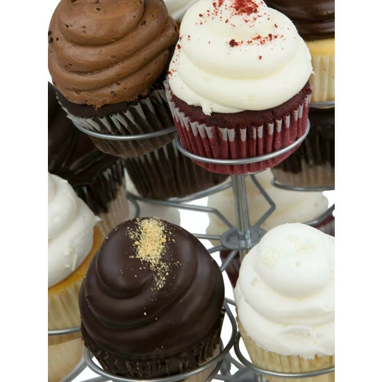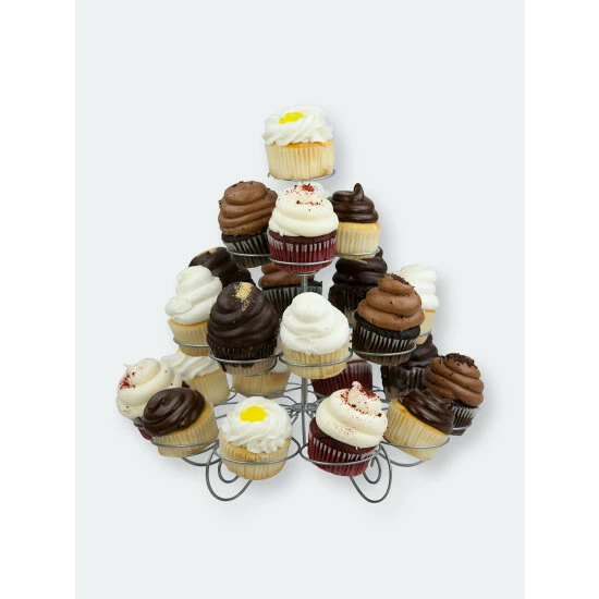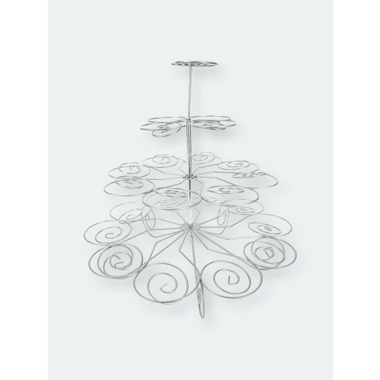 You’ve wowed your friends and family with your ability to whip up the most decadent desserts and you’ll wow them even more when you showcase your selection of delicious baked treats on this elegant 3 tier steel cupcake stand. Chit chat will quickly spiral the moment you let the intricate metal springs of this cupcake holder cradle your batch of your favorite desserts. The multi-level design lavishly displays up to 23 cupcakes and muffins. It easily assembles by twisting the rods in place. From birthdays to weddings and graduations, this 3 tiered cupcake stand will serve as the perfect centerpiece no matter the occasion.