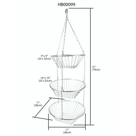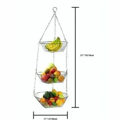 – 3 tiered hanging basket keeps fruits and vegetables fresh and household essentials close at hand