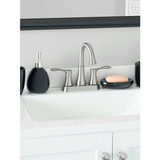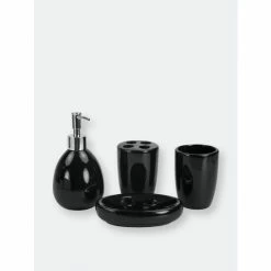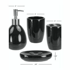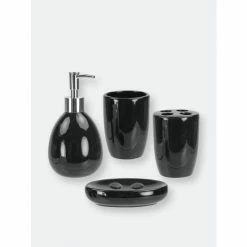 – 4 piece bathroom accessory set eliminates clutter and adds style to the counter or vanity