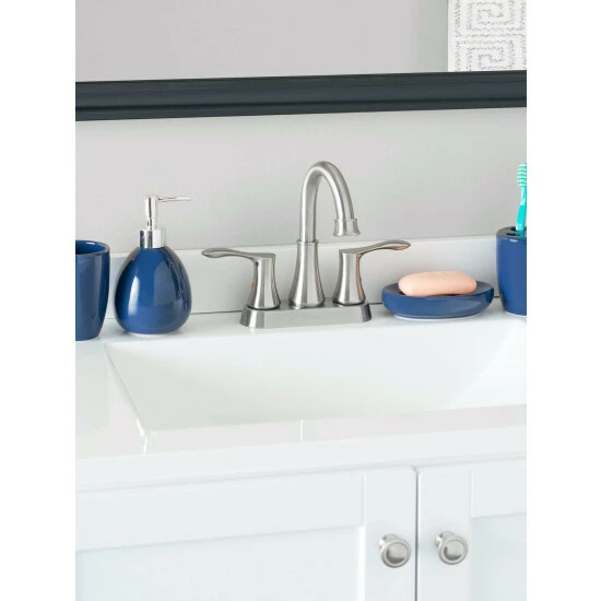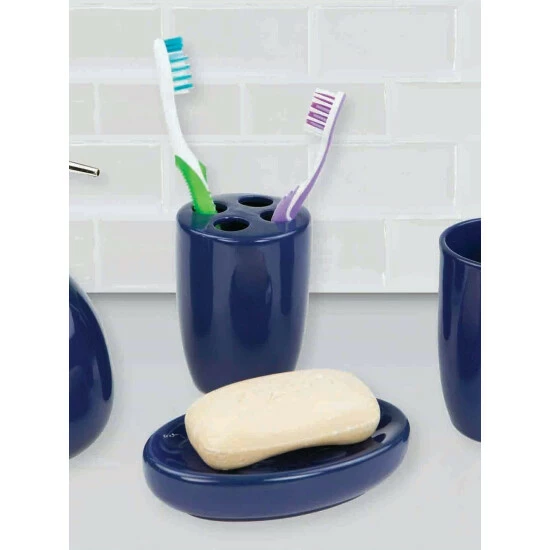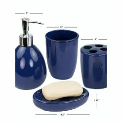 – Set includes lotion dispenser, tumbler, toothbrush holder, soap dish
