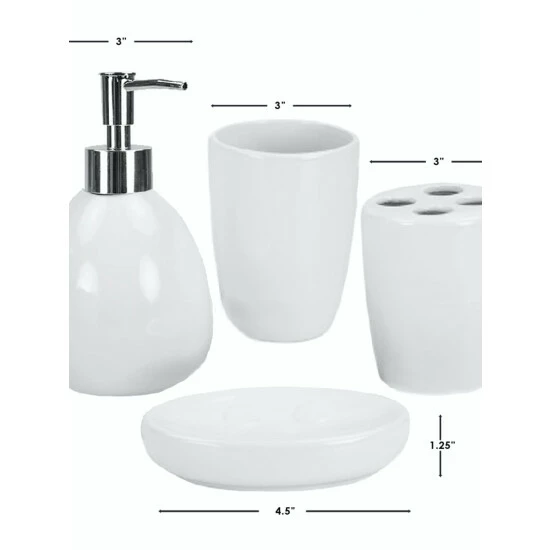 – Fully functional 4 piece bath ensemble: 4 piece bathroom accessory set adds style and function to the counter or vanity with its durable ceramic material and timeless design.