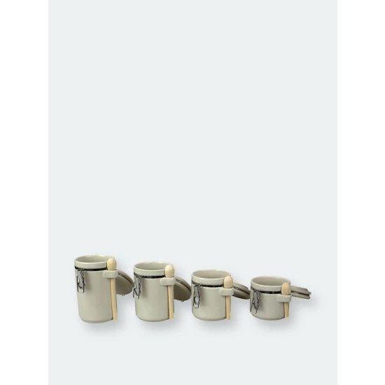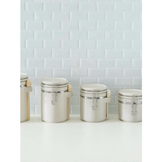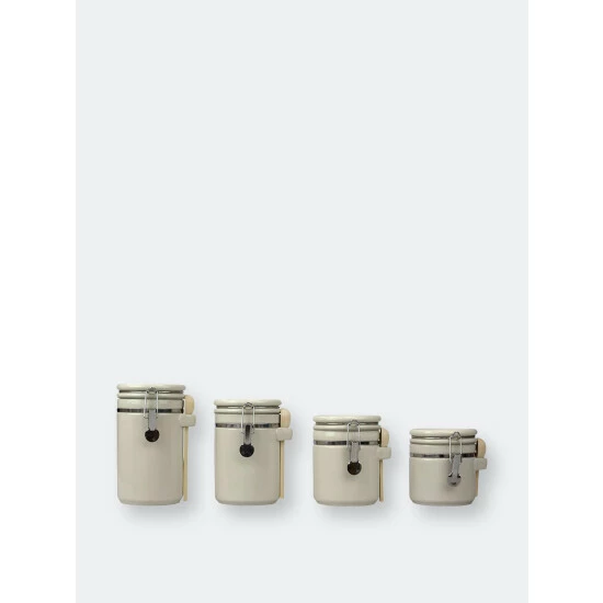 Adding a classic look to your kitchen, while keeping your counter tops and pantries clear of clutter these set of a canisters are a perfect addition to your home. With four different size containers that come with their own spoon, use each one to organize flour, coffee beans, sugar, and other dried snacks and ingredients. Each containers comes with an integrated hanging loop to tuck away the spoon when not in use.