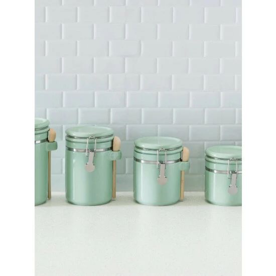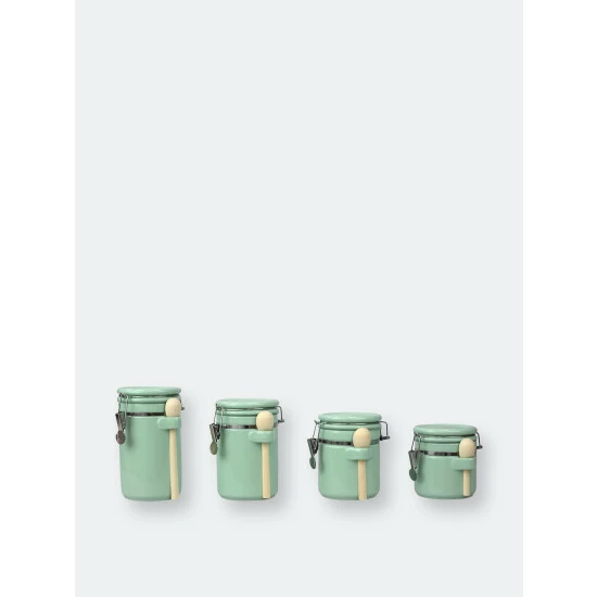 Adding a classic look to your kitchen, while keeping your counter tops and pantries clear of clutter these set of a canisters are a perfect addition to your home. With four different size containers that come with their own spoon, use each one to organize flour, coffee beans, sugar, and other dried snacks and ingredients. Each containers comes with an integrated hanging loop to tuck away the spoon when not in use.