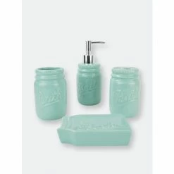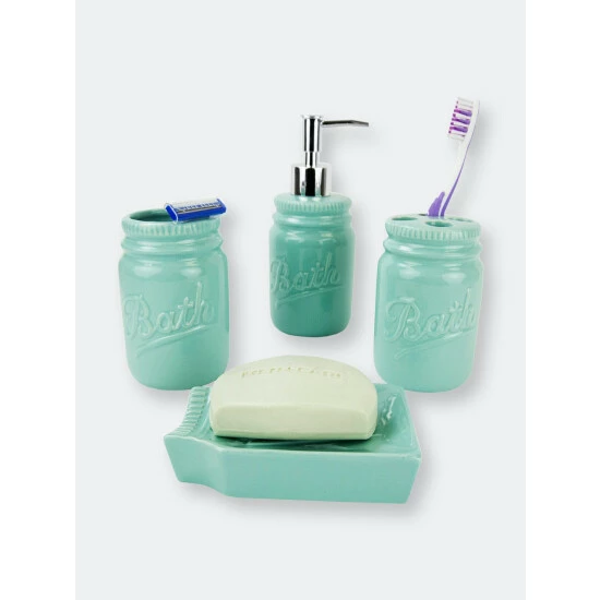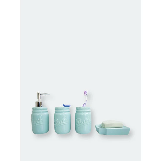 Whether for your master or guest bathroom, this 4 Piece Dolomite Bathroom Accessory Set set features a simple silhouette and neutral color scheme that will coordinate seamlessly with your modern style décor. This 4 piece bath ensemble features a glazed dolomite finish with the words “Bath” in an elegant script on each piece. This set includes all the essentials to get you through your routine, from the traditional shape lotion dispenser with a durable stainless steel pump for easy dispensing, generous size tumbler for rinsing or drinking, a large soap dish to store your favorite bar of soap, and double slot toothbrush holder to keep your toothbrushes organized. Whether you need to dispense your favorite silky smooth and fragrant lotion or need to stylishly store away your toothbrush after cleaning that million dollar smile, this set provides the perfect blend of functionality and timeless style to your bathroom. Item dimensions may differ slightly from actual product. Color and dimensions may also differ due to differences in monitor displays.
