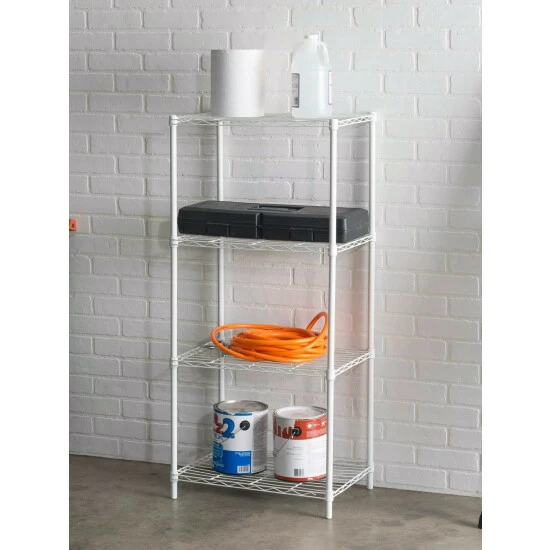 From your disastrous basement to your messy garage, this 4 shelf steel wire shelf is built to the tackle the most demanding storage requirements. The industrial steel constructed structure offers 3 shelves with maximum weight load capacity of 180 lbs. The heavy duty steel shelving is strong and spacious enough to hold everything from hefty boxes of office supplies, Knick knacks, mementos, and household essentials. No tools are required to install, so you instantly combat the clutter in your household.