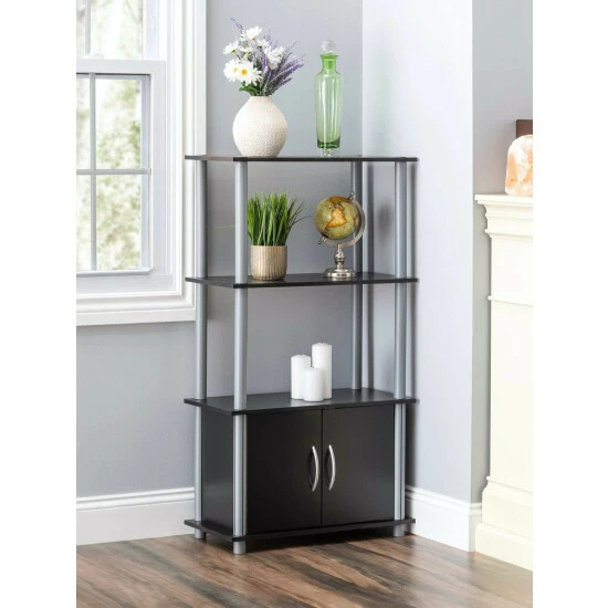 – Open shelves for displaying photos, accolades, and more with 2 cabinets for holding small toiletries, supplies, appliances, and more