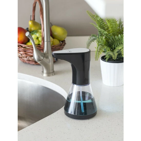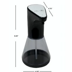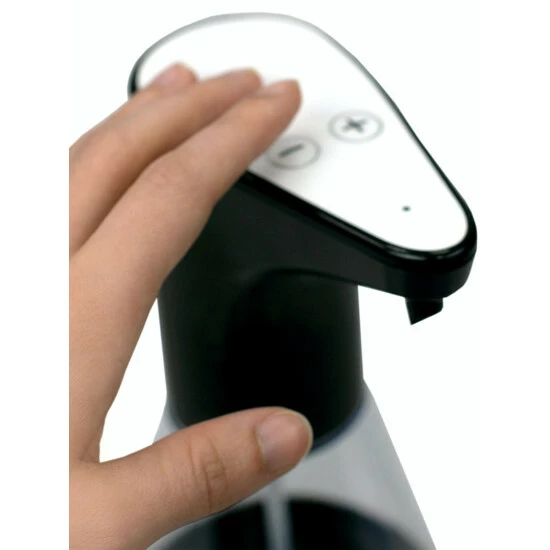 Say sayonara to yucky germs and unwanted soap wastage. The automatic, compact countertop soap dispenser promotes a hygienic and efficient way to dispense soap. Simply place your hands underneath the nozzle, and the 450 ml soap dispenser will release a fixed amount. The Volume buttons on the top allow you adjust the amount dispensed. Switch between 5 different volume levels by pressing the +/- bottoms. While great for storing hand soap it’s also perfect for housing hand sanitizer. (Soap and sanitizer not included). Operates on 4 AA batteries. (Batteries not included).