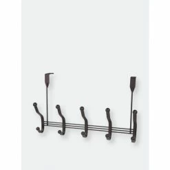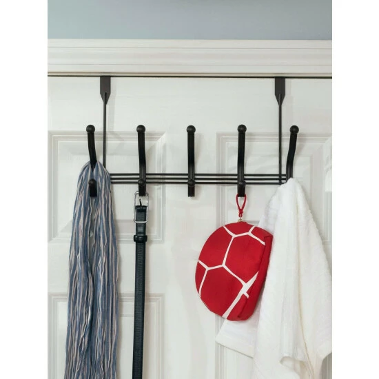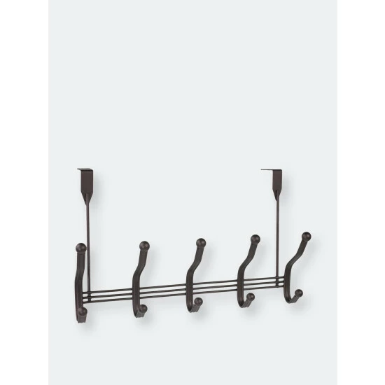 – 5 dual hook style hanging rack: 5 hooks span vertically across with additional knobs situated above for even more storage. It’s conveniently sized to be placed over an interior door, providing quick access to items such as your pet’s leashes, selection of scarves, bulky robes, and everyday clothes.