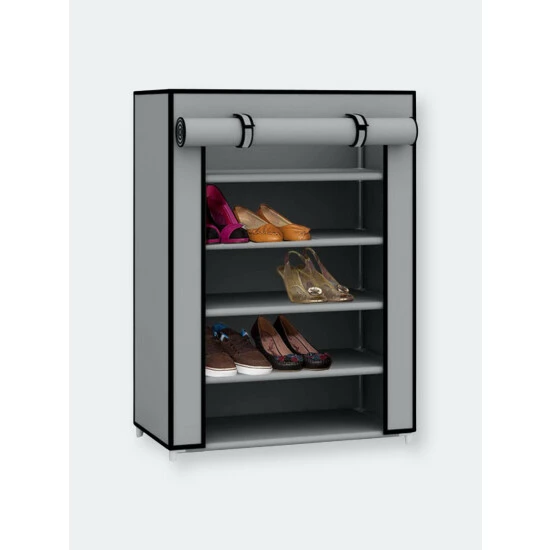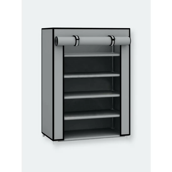 A perfect solution for your shoe storage dilemma, this 5 tier shoe storage tower can be placed in a busy entryway to keeps shoes readily accessible or ina cubby closet to keep folded linen, bath towels and shirts neatly stored. The unit holds up to 12 pairs of shoes. It is constructed of thickened metal pipes with sturdy plastic connectors with removable tiers to fit taller items. Roll the fabric cover down to keep dust and debris from entering or roll it back up to keep it in place view. It snaps together for hassle-free set up within minutes and requires no tools to install.