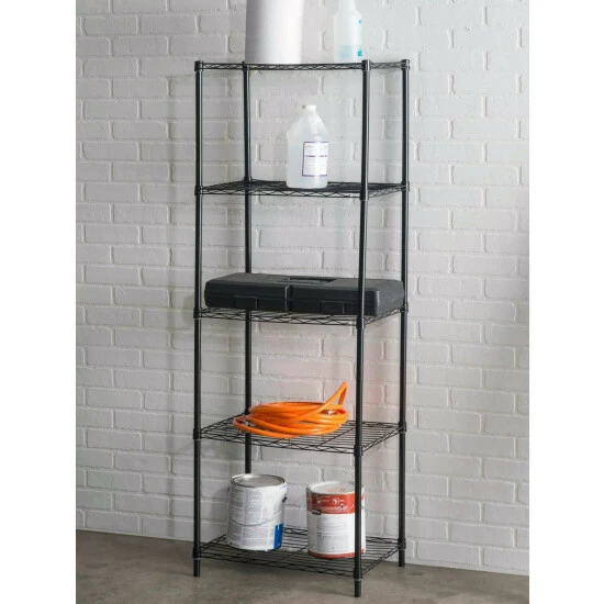 Unlike solid wood shelves that collect dust and debris, this shelving unit boasts an open, wired frame that is specifically designed to increase visibility and ventilation. The shelf is constructed of robust steel offering both contemporary charm and supreme durability. A steel wire shelf that works just about anywhere! With no tools required to install, you can set it right out of the package. Great for the home or office, use it in the kitchen to organize pots and pans. Or use this metal shelf in the living room to keep your collection of your favorite books and magazines neatly organized. This steel wire shelf also can be placed in the garage and basement to organize extension cords, hardware and tools, buckets of paint. It’s incredibly useful in a warehouse to store your products or in the office room to documents and supplies. Each shelf can store up to 50 lbs when evenly distributed. No tools are required to install, so you can easily set it up right out of the box.