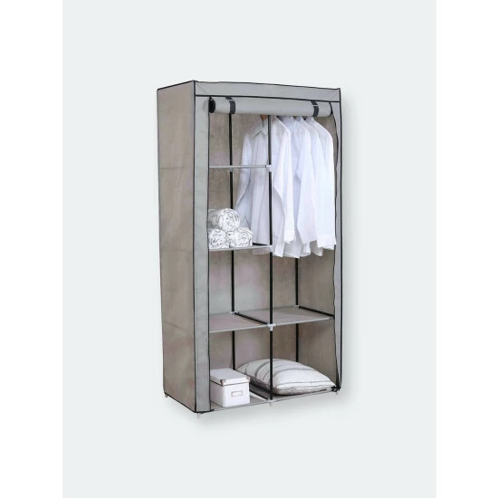Sometimes a single closet isn’t enough to store away your household essentials and your extensive wardrobe. A lightweight alternative to standard wood wardrobe organizers, this portable closet features light and airy polyester cover wrapped around a robust steel frame with high quality plastic connector to making dismantling and set up a breeze. It offers plenty of storage with 6 shelves that are great for stacking bulky sweaters, light bedding, bath towels, office supplies. It also features 43″ closet rod for hanging large garments like suits and dresses. Everyday attire, office and cleaning tools, or seasonal decor – this portable closet provides a quick and spacious long term (or seasonal) storage.
