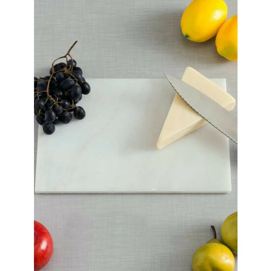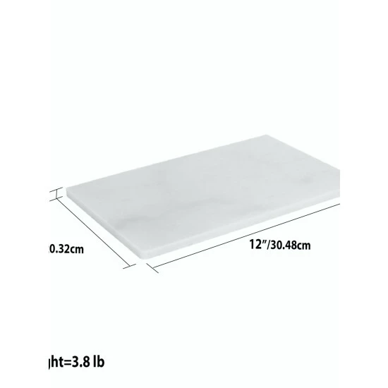 Perfect for prepping pastries or as a beautiful backdrop for your array of colorful appetizers and desserts and even beauty products. This gorgeous cutting board is crafted out of durable marble that remains cool at room temperature, making it great for keeping dough firm as you roll and cut without the need to constantly powder the top with flour. The cool marble surface is ideal for provides ample space for a variety of chopping and baking prepping tasks from rolling out chocolate chip cookies to shaping bread. It is substantial and weight to endure the daily wear and tear of everyday cooking and baking, while the rich veining welcome an aura of elegance to the kitchen.
