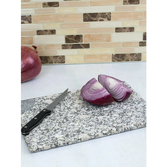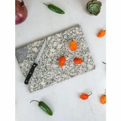 Reminiscent of a polished gem, this granite cutting board brings class and sophistication to food preparation. The heavy duty design provides a durable surface to slice, chop and prep fruit and vegetables. This ultra-sturdy board is both beautiful and easy to clean. No two pieces are the same; They are truly one-of-a-kind. Due to the item’s natural material, shade and color variations will occur.