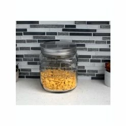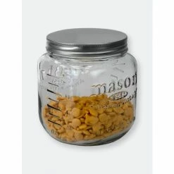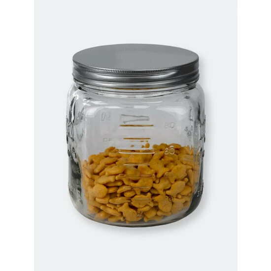 The versatile glass mason jar features thick glass walls with measurement indicators on the side. Beyond canning jams, storing honey, this mason jar is great for storing coffee beans, flour, sugar, or other dried ingredients you want close at hand. Store and showcase your favorite foods. Or load it up with candies and other sweet treats for the perfect home-made gift.