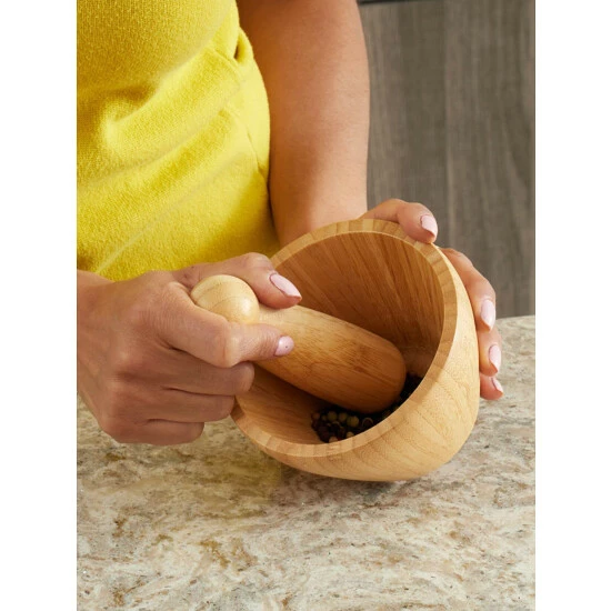 Maximum flavor extraction from your favorite fragrant herbs and spices is something you’ll never miss when you have this mortal and pestle at your fingertips. The large pestle pulverizes ingredients quickly, unleashing their full flavor with little and minimal effort. Both pestle and mortar are crafted out of solid bamboo and are substantial in weight to prevent slipping and sliding off your work surface. This convenient kitchen gadget is great for grinding seeds and peppercorns for smoking rubs or for pulverizing a whole avocado for a creamy and savory guacamole sauce. The finish is smooth to the touch so that you can extract the full flavor without having herbs and spices getting stuck on the sides. Instead of busting out the blender and dealing with the messy aftermath opt to use this bamboo mortar and pestle to get the job done right!