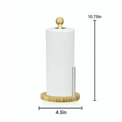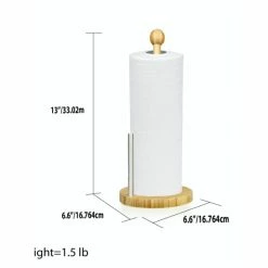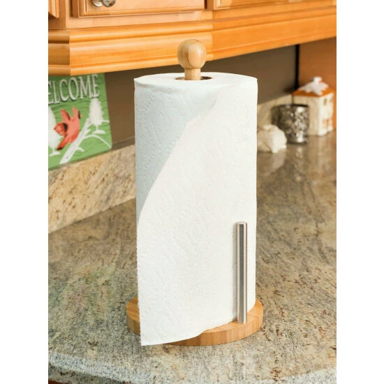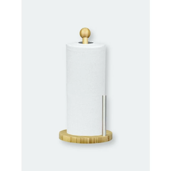 Simple and durable, this bamboo paper towel holder with a chrome finish will add an earthly and modern touch to the kitchen. Use this free-standing paper towel holder for everyday messes in any room of the house or bring it outside for the occasional spill for those special get-togethers. Slide a roll to use and slide it back out to remove. A convenient metal bar located on the side helps you to tear a single sheet at a time.