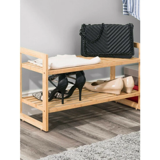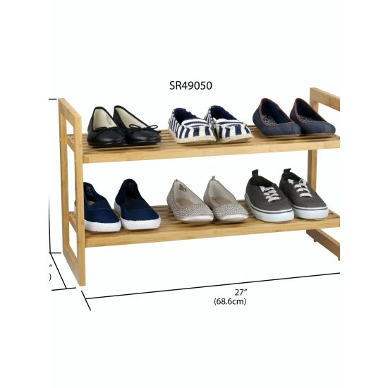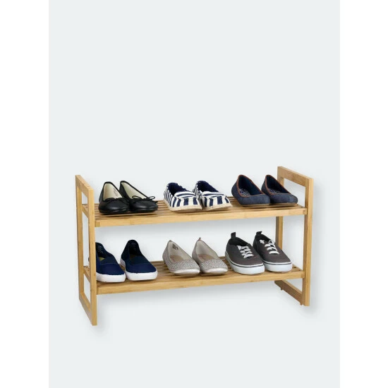Store and organize all of your shoes and heels in one convenient place. Made from heavy duty bamboo. Holds 6 pairs of shoes. 2 levels of storage. Easy to assemble. Maximize your storage space.