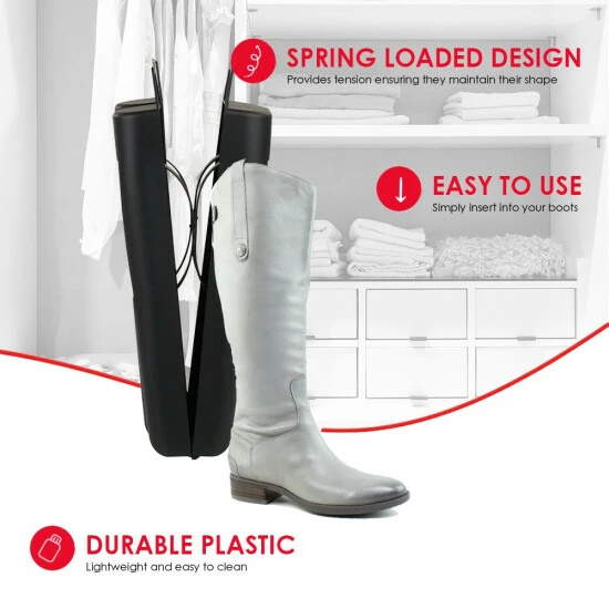 – The spring-loaded design provides tension for all types and styles of boots, ensuring they maintain their shape and form.