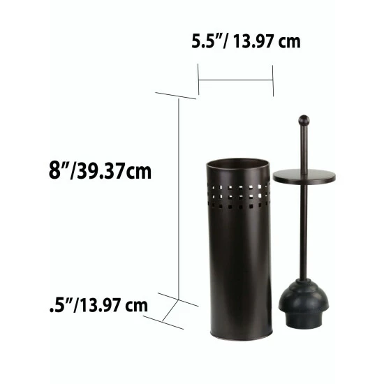 Keep your toilet clean and clog free with this toilet plunger. Made from high quality stainless steel. Rust resistant. Includes a holder for easy storage and to keep the plunger out of sight. Easy to use steel handle for control when using.