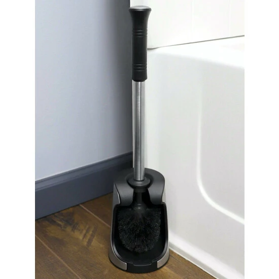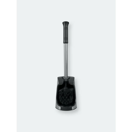 Tidy up the toilet bowl in no time with this toilet brush with matching caddy. The brush head feature power scrubbing bristles that eliminate stains without scratching the delicate surfaces of your toilet’s basin. The handle is sized at an ideal length for easy maneuvering hard-to-reach areas, with a soft grip that reduces tension when used for an extended period of time. The matching holder features a storage slot so you can easily tuck it away when not in use. The holder also features an open front that lets air circulate so you won’t ever have to worry about messy mildew build-up.