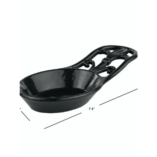 When you don’t want to mess up your squeaky-clean counters with your Sause-filled spoons, enlist the help of this refined Spoon Rest to keep them protected in a regal fashion! You’ll enjoy the chic design as much as its functionality. Adorned with the beloved classic fleur de lis, it captures the essence of vintage French style, while its oversized design perfectly cradles everything from small tasting spoons to larger cooking utensils such as ladles or spatulas. It is crafted heavy duty cast iron with an embossed finish that is substantial in weight to prevent it from slipping off the counter. The sloped open handle makes it easy to store away on a rack when not in use. Whether you need a place to rest cooking spoons after stirring and mixing, it’s sure to punctuate your kitchen with a fabulous French Flair.