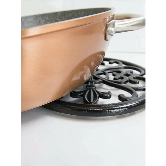 While succulent flavors and sensational aromas are a must for cooking, we all know that presentation is key to bringing your culinary creation together. Instead of storing your fresh out-of-the-oven meals on just any ordinary serving dish, display your finest concoction on this elegant trivet. The rounded base with sturdy bottoms provides a stable platform, while also protecting tabletops and counters from pot burns and scratches. The intricate fleur de lis pattern graces your table setting with a classic chic charm.