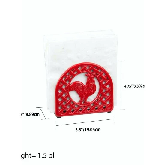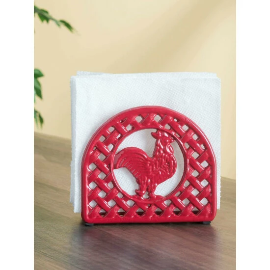 A great addition to a farmhouse kitchen, this cast iron napkin holder brings country charm to the kitchen with its fun rooster design. The napkin holder stands upright and positions all types of napkins in a vertical manner for easy access. Crafted from heavy duty cast iron, it’s great to use on breezy spring days outdoors and remains stable when pulling out napkins.