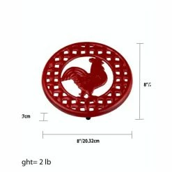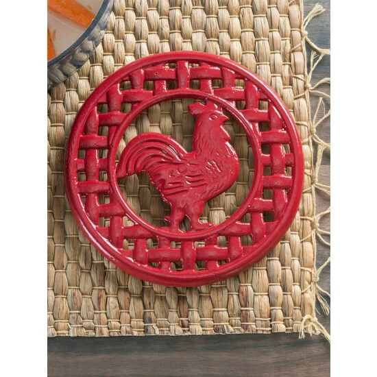 Keep hot pots & pans off the counter with this steel trivet. Made from heavy weight cast iron steel. Rust resistant. Beautiful simple rooster design is perfect for any kitchen.