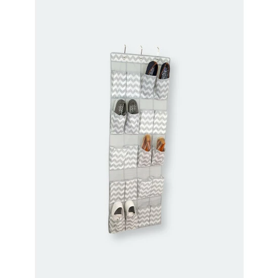 Store and organize all of your shoes and heels in one convenient place with this Home Basics Over-the-Door Shoe Organizer. Made of non-woven material, it holds up to 20 pairs of shoes and features a beautiful chevron design.