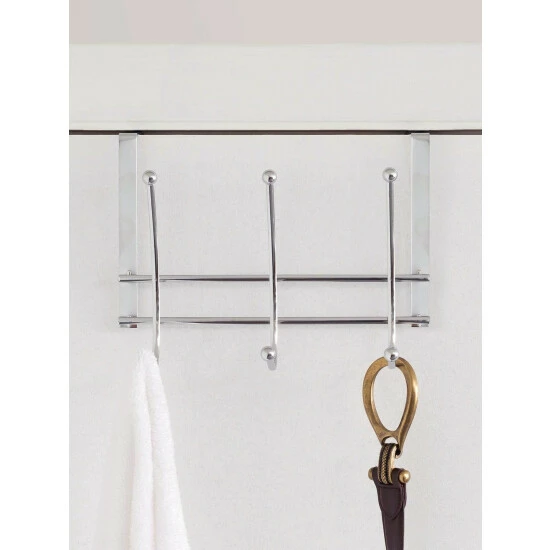 Hang and store Towels, coats, clothing, and other house hold items. Made from heavy duty chrome steel. Rust resistant. Hangs easily on any standard size door. Maximize your storage.