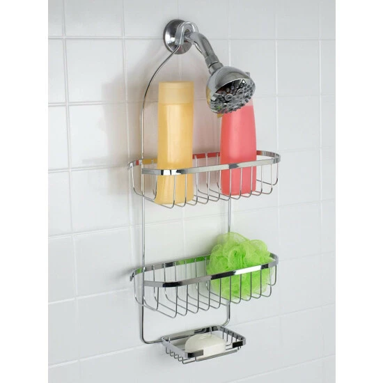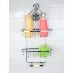 Keep your shower clutter-free with this sleek, rust-prof shower caddy! A perfect addition to your shower, if you’re looking for a caddy that is small and compact and not too bulky this is definitely a good choice for you. With 2 shelves it’s easier than ever to organize all your bath accessories. The top portion is narrow in size, making it perfect to load it up with tall bottled shampoos and conditioners. For keeping your loofas, wash cloths and razors right at your fingertips, the deeper basket shelf is great at doing that! Each shelf features an enclosed basket design to ensures water and soap suds pass through and only your bath and shower accessories stay put. With two suction cups included, you can easily have it anchor it to the shower wall for added security and stability. The shower caddy requires no tools or hardware to install. Simply slip it over the shower head to use.