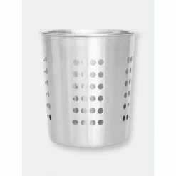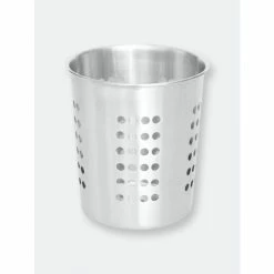 Enhance the look of your kitchen and keep your most frequently used kitchen tools close at hand with this upright utensil holder. This large capacity holder is roomy enough for storing a wide variety of gadgets and utensils from silverware, spatulas, ladles, serving spoons, tongs, and more. A perfect addition to your home kitchen and a great gift for friends and family, it helps keep your commonly used kitchen utensils at the ready and the countertop tidy. Made of premium quality stainless steel it features a smooth finish with elegant perforated details that bring stylish flair to your kitchen. It features a sturdy base to prevent toppling over when filled to its full capacity. And with drain holes all around the surface of the container, it allows for efficient drying of all your utensils. Utensils not included.