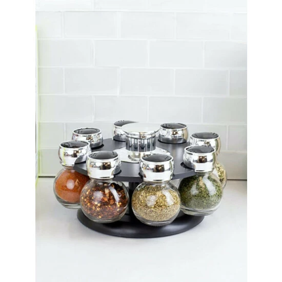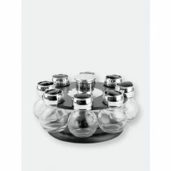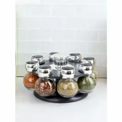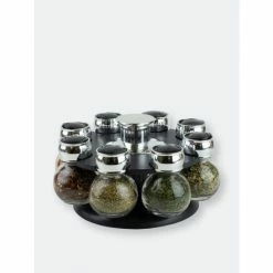 A classy contemporary style spice rack that won’t consume precious space in the kitchen. The low profile design herb and seasoning organizer allows you to fit it inside a cabinet while the compact size takes little room on the counter giving you more space to lay out your collection of frequently used kitchen tools and ingredients. Turn the center knob of this convenient spice rack to have full access to your collection of herbs at every angle. The set comes complete with 8 empty jars, so you have plenty to cover the basics and keep your essential seasonings right at your fingertips. From rosemary, cumin, to salt and pepper, all of the spice jars do not come pre-filled so you can load it up with whatever you want. (Spices, herbs, and seasonings NOT included).