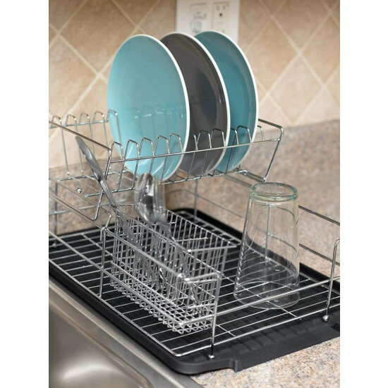 Need space for that whole weekend’s worth of dishes you left piled up in the sink? The Deluxe 2 Tier Dish Rack is here help out. This multi-level dish rack offers plenty of room to separate dishes and utensils. The upper level is great for stacking plates, while the bottom tier is great for stray lids, cups, and small bowls. No need to place a drying mat underneath the rack? It features a removeable tray with a lipped edge that directs water into the sink, keeping your counters clean and dry. You can easily slide it out the draining board to clean or use it as a separate drying rack.
