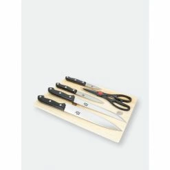 Let’s face it: Sometimes we don’t need such an expansive collection of knives and a Big ‘ole display block, especially when kitchen storage space is at a premium and you only want the basics. If a few tried and true blades and a stable surface to prep on is what you’re in the market for, consider adding this essential series knife set to your culinary repertoire. A knife set that covers a full fledge of kitchen tasks, it comes complete with a pair of Kitchen Shears, 3.5 inch Paring Knife, 5” Utility Knife, Chef Knife, and an 8” Carving Knife. All of which offer full tangs throughout the knife with razor sharp stainless steel edges for , tripled rived comfort handles for stability,